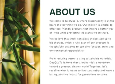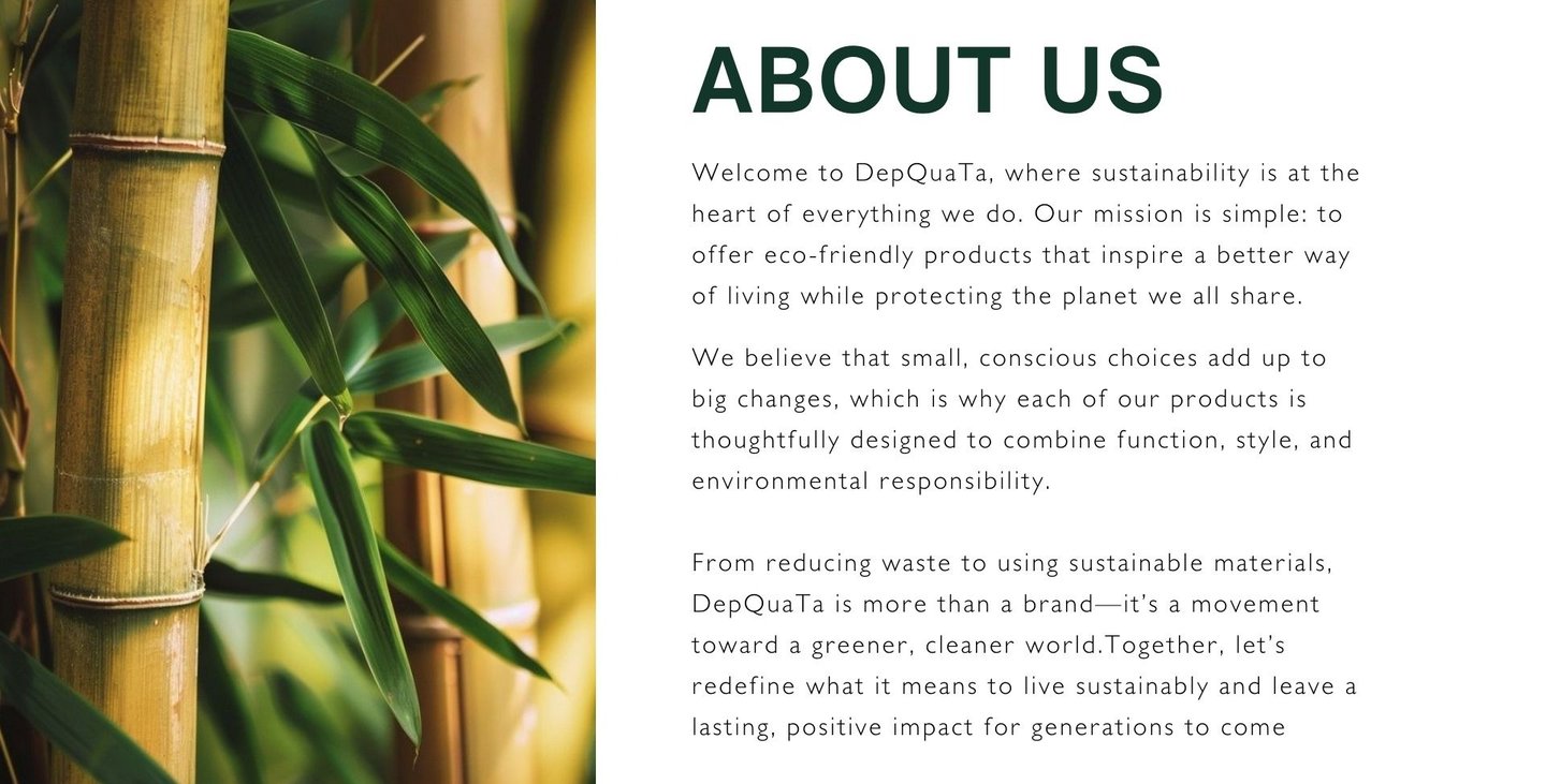 At DepQuaTa, we prioritize eco-conscious innovation, offering high-quality sustainable products that enhance everyday living while supporting ethical suppliers and creating a seamless shopping experience for our customers.